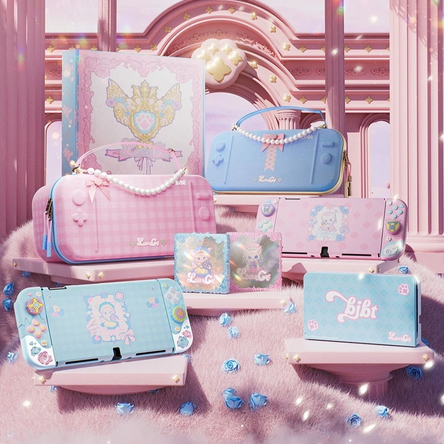 BJBT Lolita Cat Series NS2 Protective Case Set - Carrying Bag, Controller Case & Joystick Caps for Switch 2 Cute Gaming Accessor