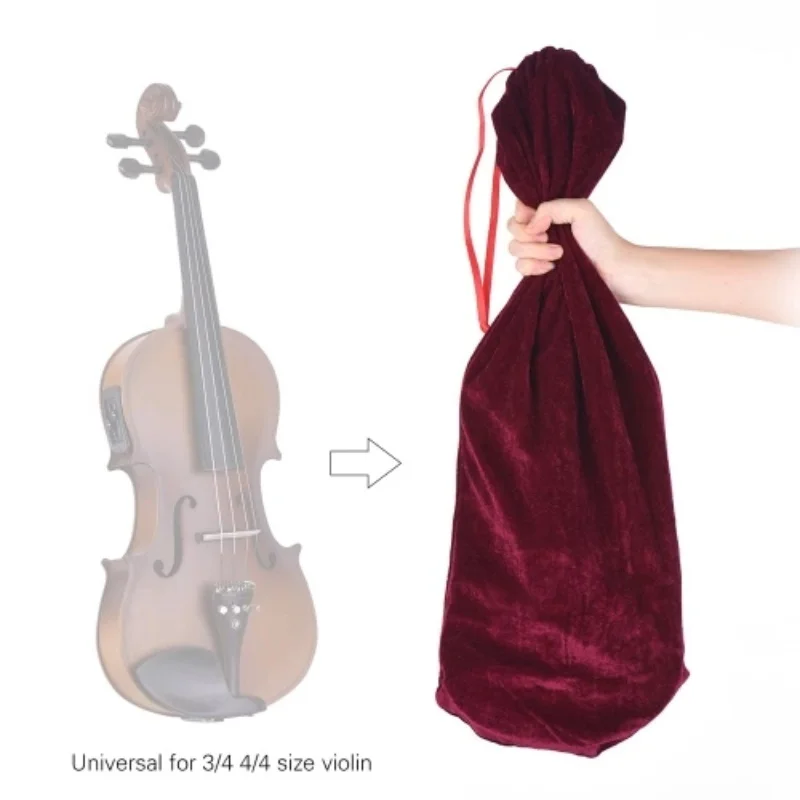 Violin Bag Dust Cover Satin Fabric Protective With Drawstring Accessories For 4/4 And 3/4 Red Color