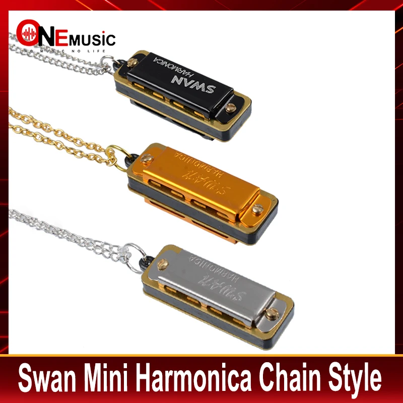 10Pcs Swan Mini Harmonica 4 Holes 8 Tones Harmonica Mouth Organ Metal Chain Necklace Style