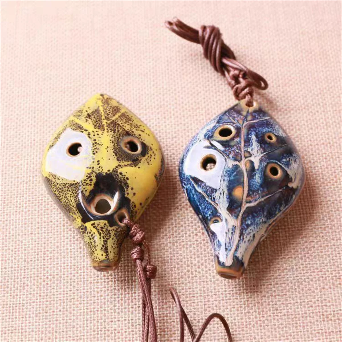 ancient Chinese style ocarina 1pc, six-hole handmade ocarina instrument, pleasant sound, with lanyard, like a leaf