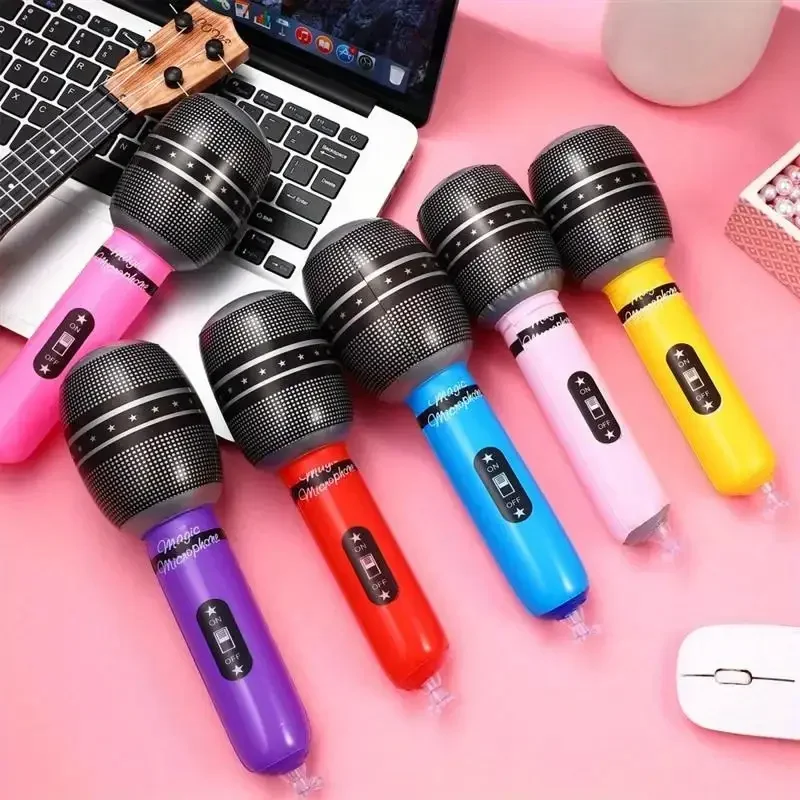 Six inflatable microphones, decorative props for music parties, inflatable musical instruments and household party supplies.