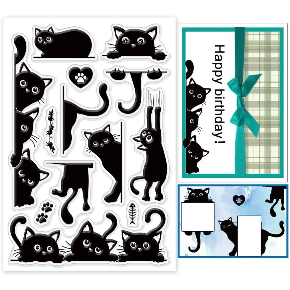 Black Cat Clear Stamps for DIY Scrapbooking Cat Border Silicone Stamp Seals Transparent Stamps for Cards Making Photo Album