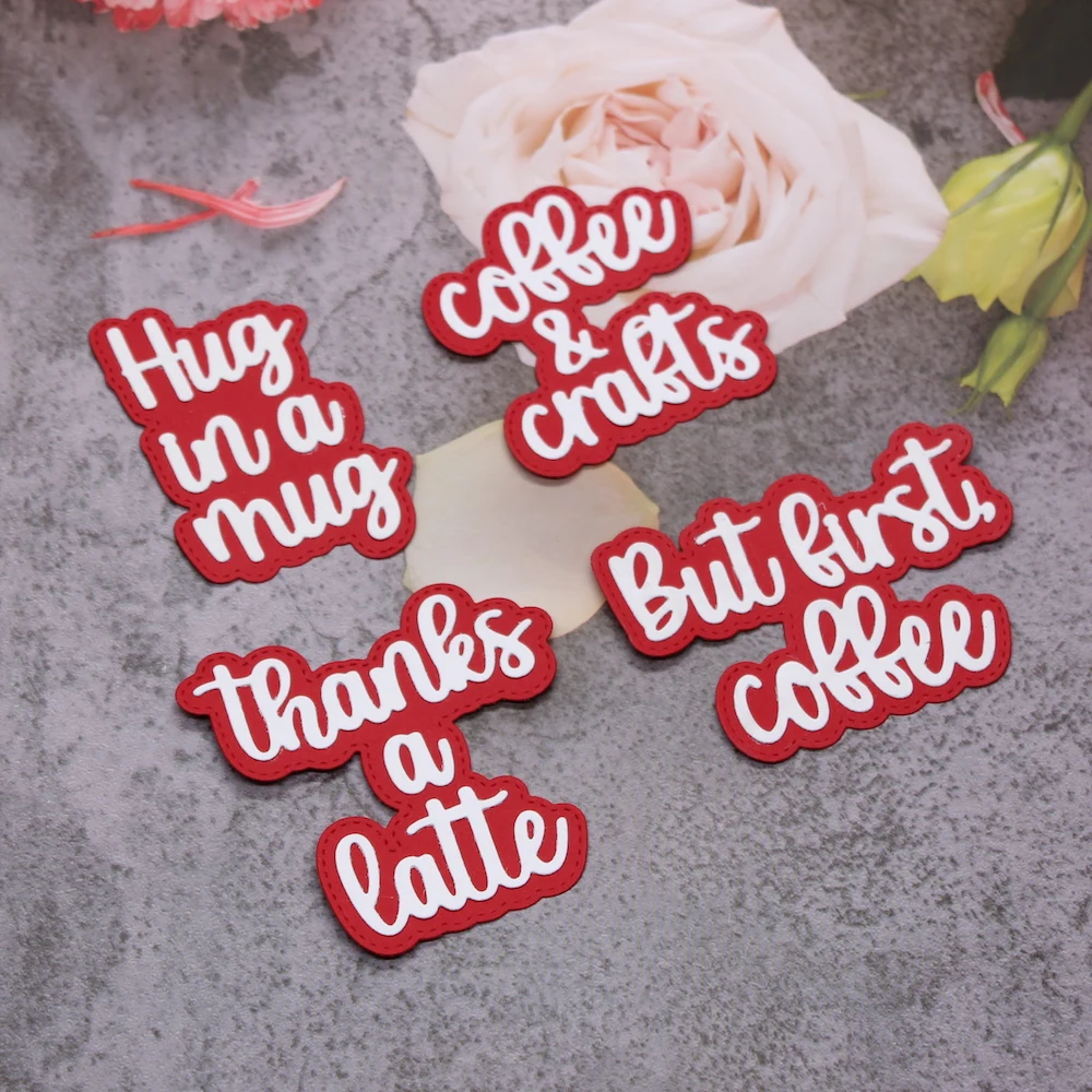 KSCRAFT Coffee Sentiment Shadow Words Metal Cutting Dies Stencils for DIY Scrapbooking Decorative Embossing DIY Paper Cards