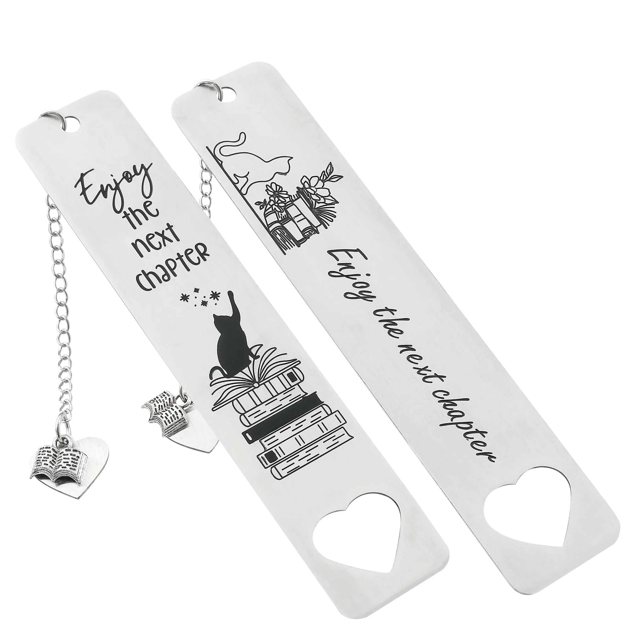 Stainless Steel Bookmark for Books Lover Gifts Enjoy the Next Chapter Cat Books Marks Reading Study Supplies Gifts for Students