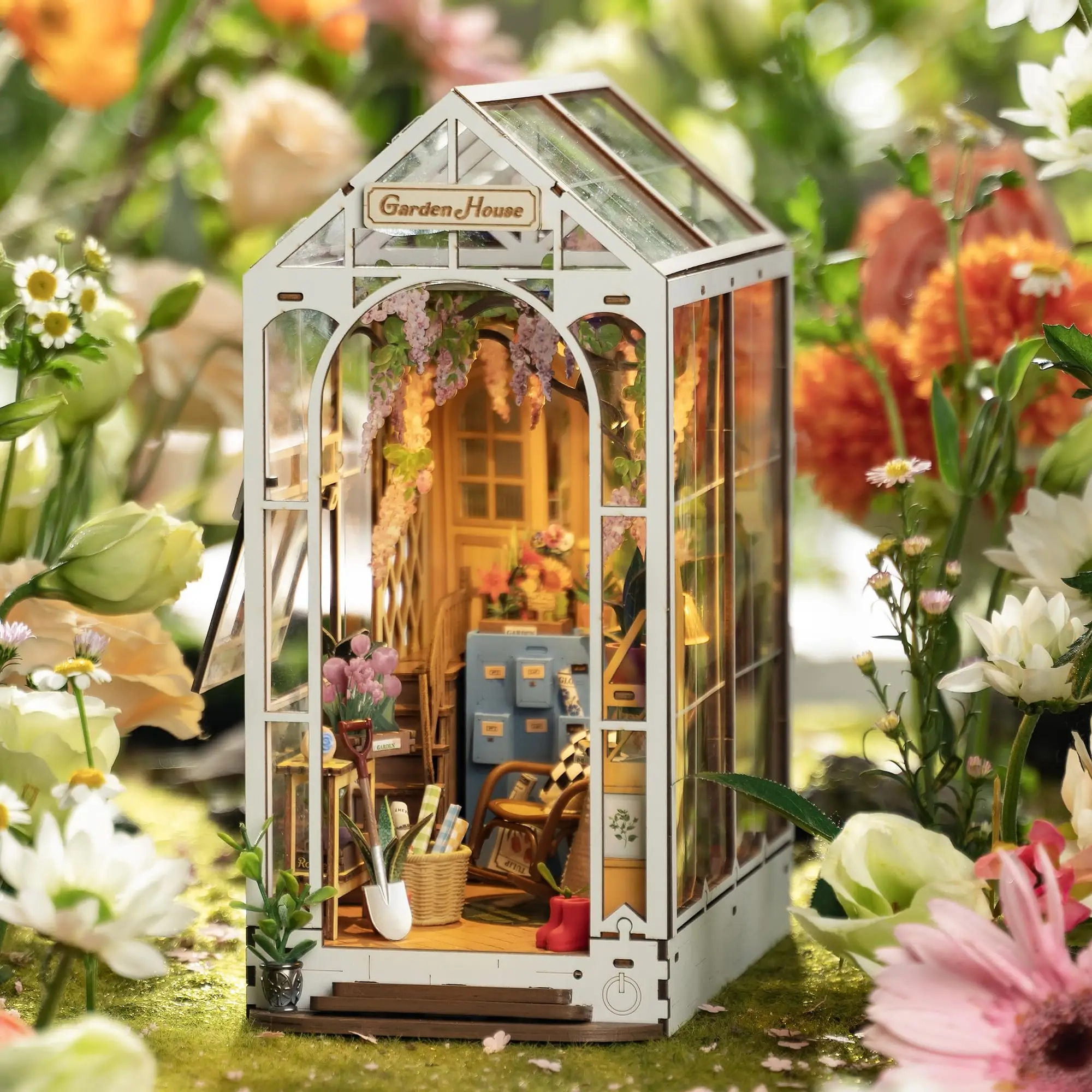 Robotime Rolife Garden House Book Nook Kit Book Shelf Insert Easy Assemble Toys Gifts for Kids Women Girls Home Decoration TGB06