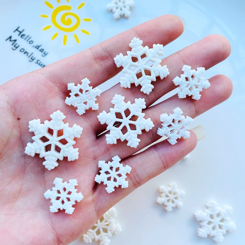 10 Pcs New Mini Kawaii Cartoon Snowflake Resin Flat Back Cabochons Scrapbook Diy Party Hairpin Accessories Decorate Craft A67
