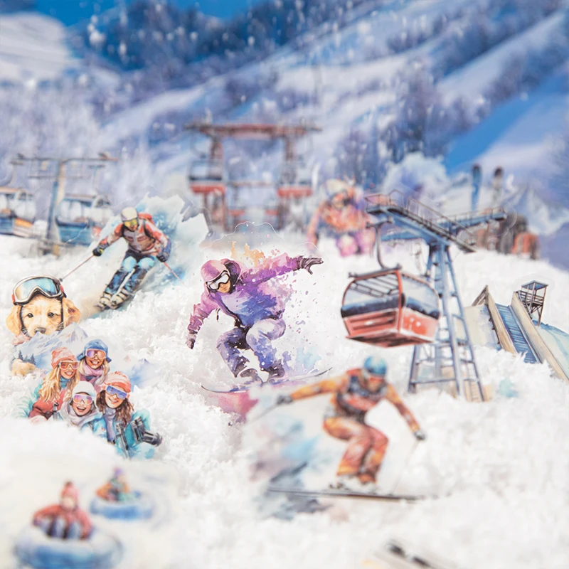 Journal GO 25pcs Cool Skiing Stickers Snow Winter Collage Junk Journal Scrapbooking diy Card Making Label Stationery