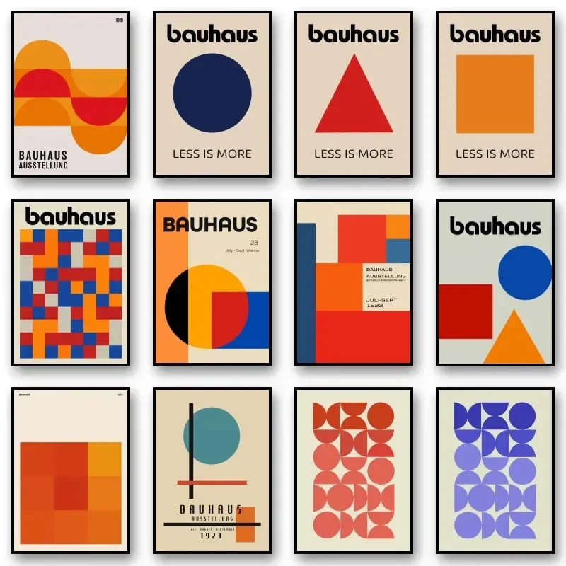 Mid Century Modern Bauhaus Abstract Geometric Posters Less Is More Wall Art Canvas Painting Prints Pictures Living Room Home