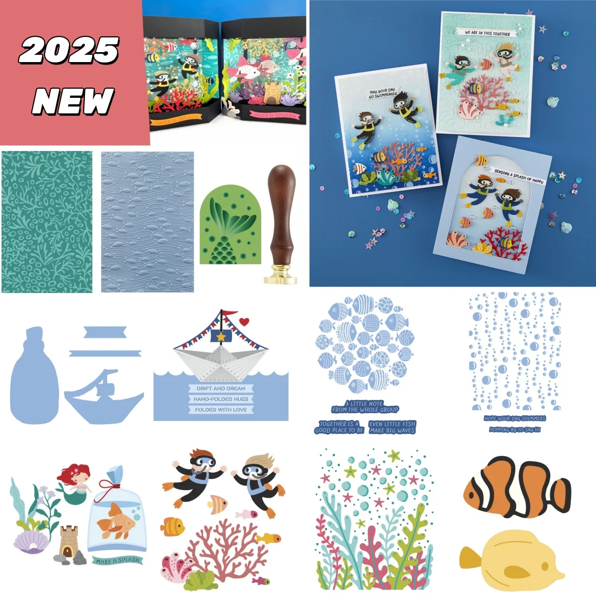 2025 Underwater World Diving Clear Stamps Metal Cutting Dies Stencil Hot Foil Wax Stamper for DIY Scrapbook Embossed Handcraft