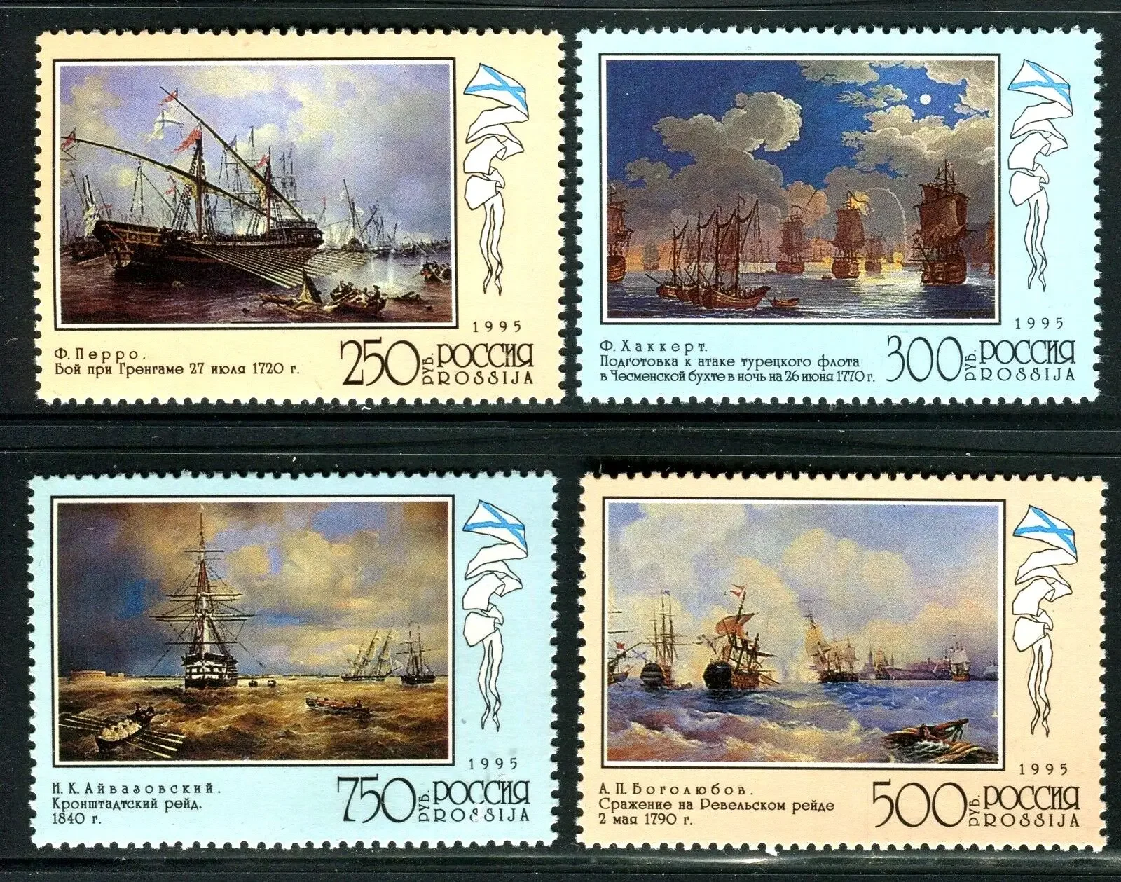 4Pcs/Set New Russia Post Stamp 1995 300 Years of Russian Navy Paintings Postage Stamps MNH  Read more