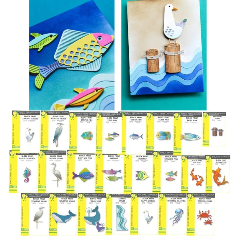 Sea Fish Seagull Ocean Seahorse Crane Pelican Waves Metal Cutting Dies Silicone Stamps Scrapbook Stencil Photo Album DIY Paper  Read more