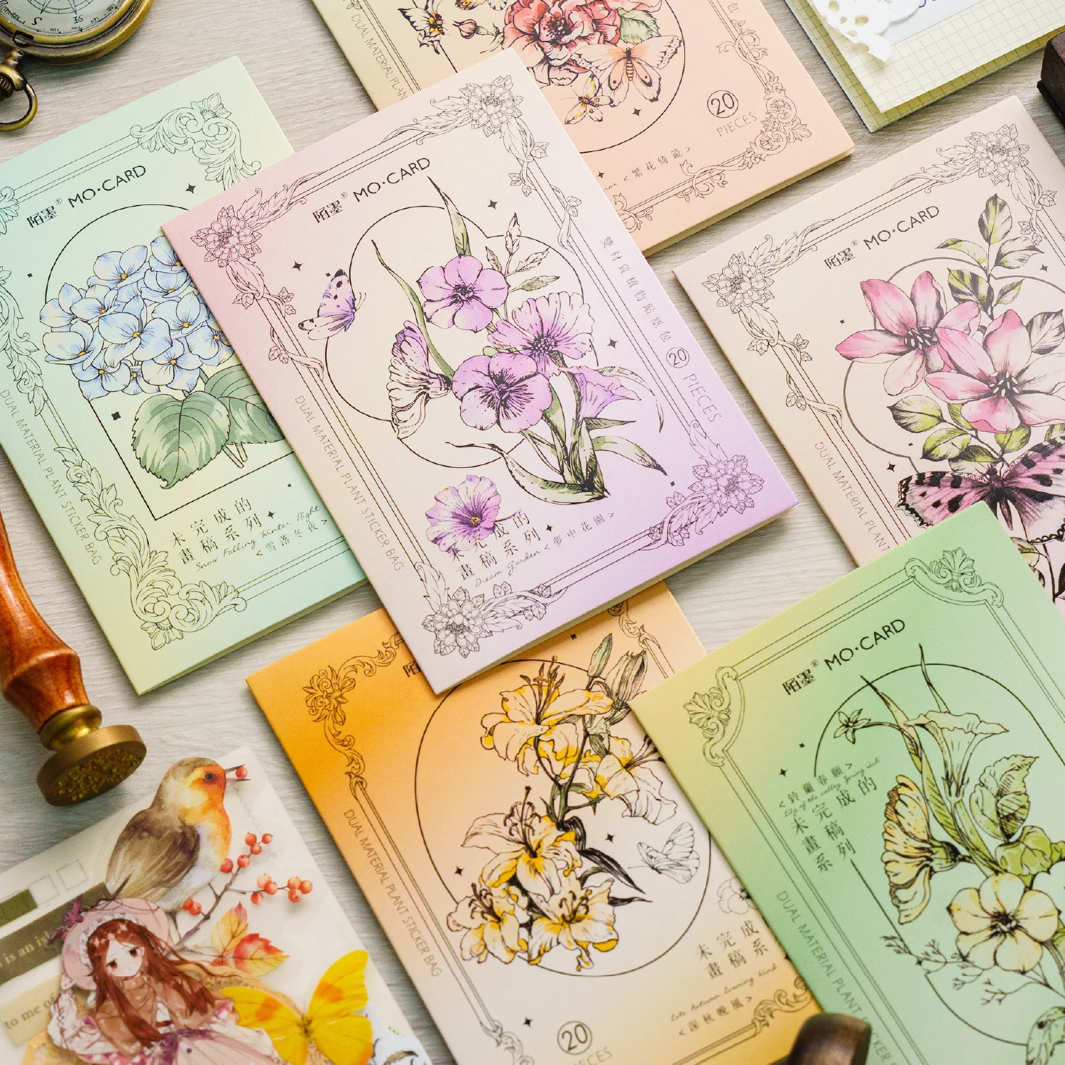 JIANQI 20 Sheets Plant flower artwork Stickers Creative Decorative handmade Scrapbooking Material Diary Album Craft Supplies