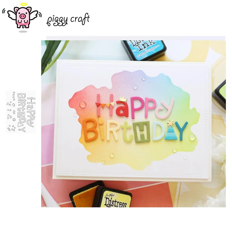 Piggy Craft metal cutting dies cut die mold Happy birthday letters Scrapbook paper craft knife mould blade punch stencils dies