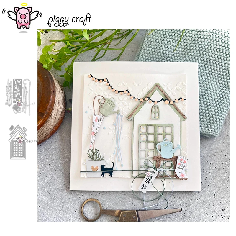 Piggy Craft metal cutting dies cut die mold Welcome letter house Scrapbook paper craft knife mould blade punch stencils dies