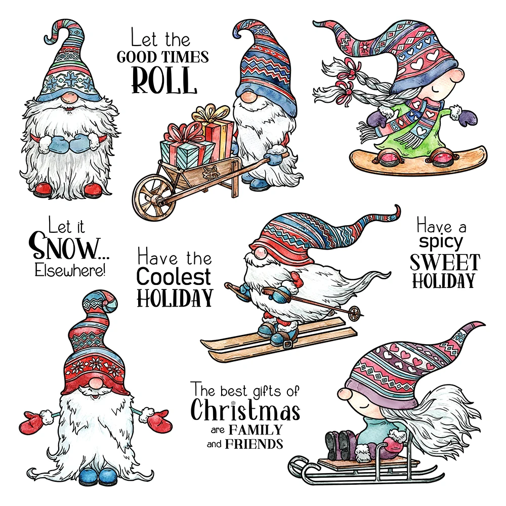 Mangocraft Cute Christmas Skiing Gnome Cutting Dies Clear Stamp DIY Scrapbooking Metal Dies Silicone Stamps For Cards Xmas Decor