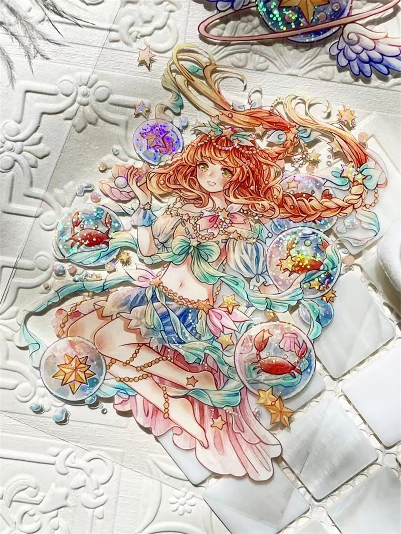 1 Loop Lovely Fairy Girls Mermaid Shiny PET Tapes DIY Decor Card Making Scrapbooking Journal Material Plan Sticker Sample