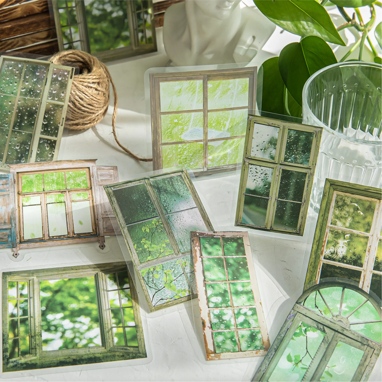 JIANQI 20pcs/pack Window Landscape Stickers Decor Junk Journal DIY Srapbooking Collage Stationery PET Scrapbook supplies