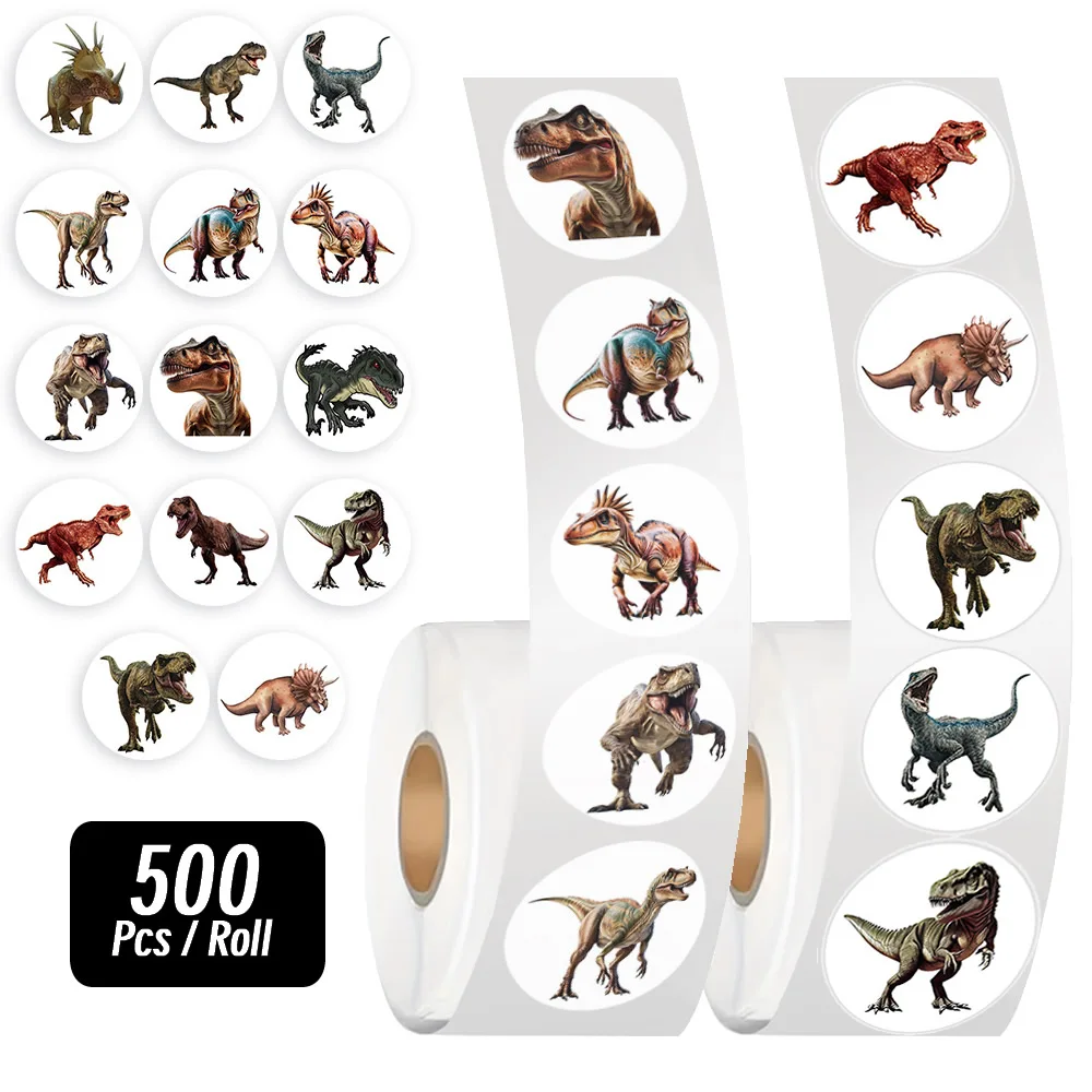 500pcs/roll Cartoon Dinosaur Stickers For School Reward Stickers Classroom Decoration Encouragement Sticker For Student Teacher