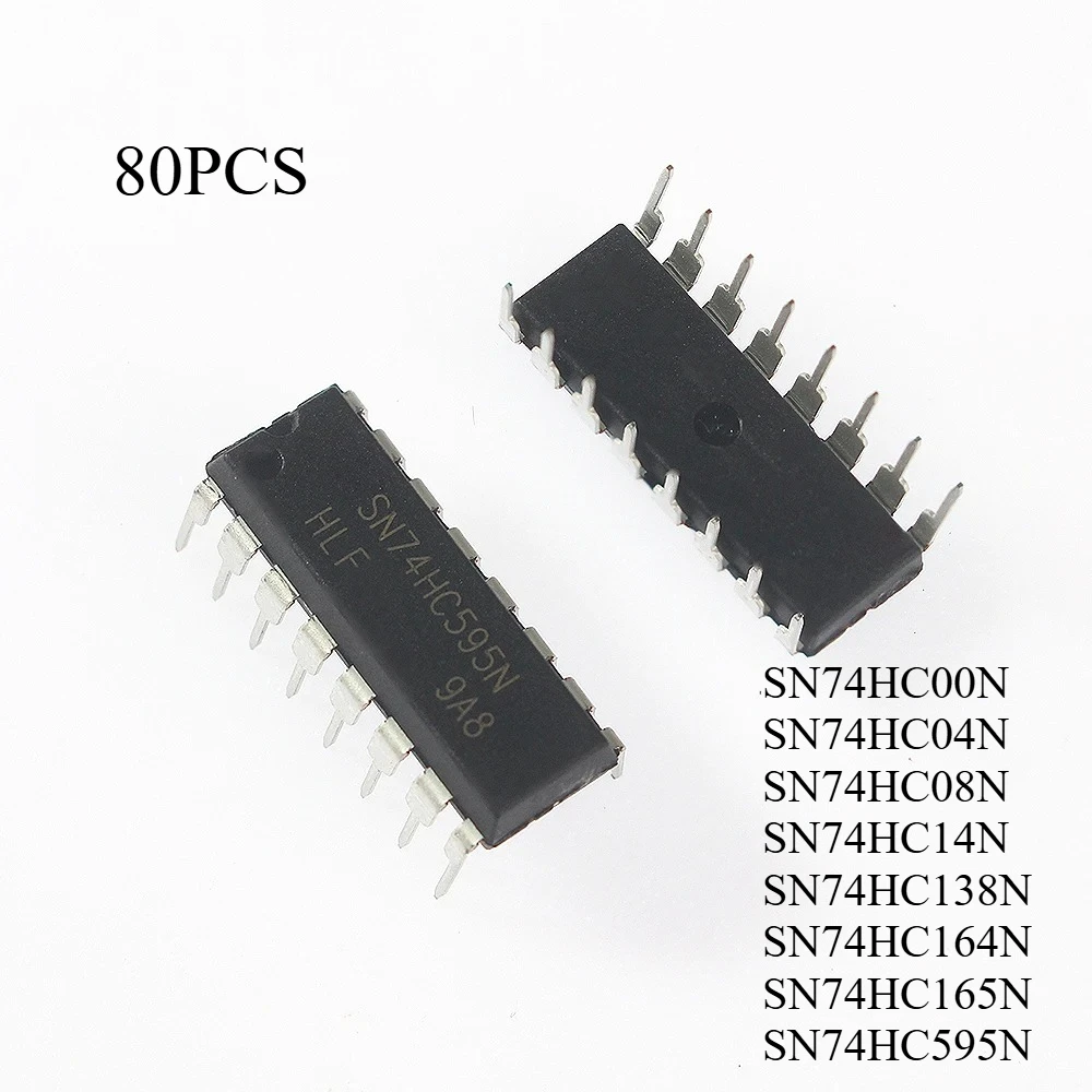 80PCS/box Integrated Circuit Kit SN74HC00N SN74HC04N SN74HC08N SN74HC14N SN74HC138N SN74HC164N SN74HC595N SN74HC165N DIP Packing