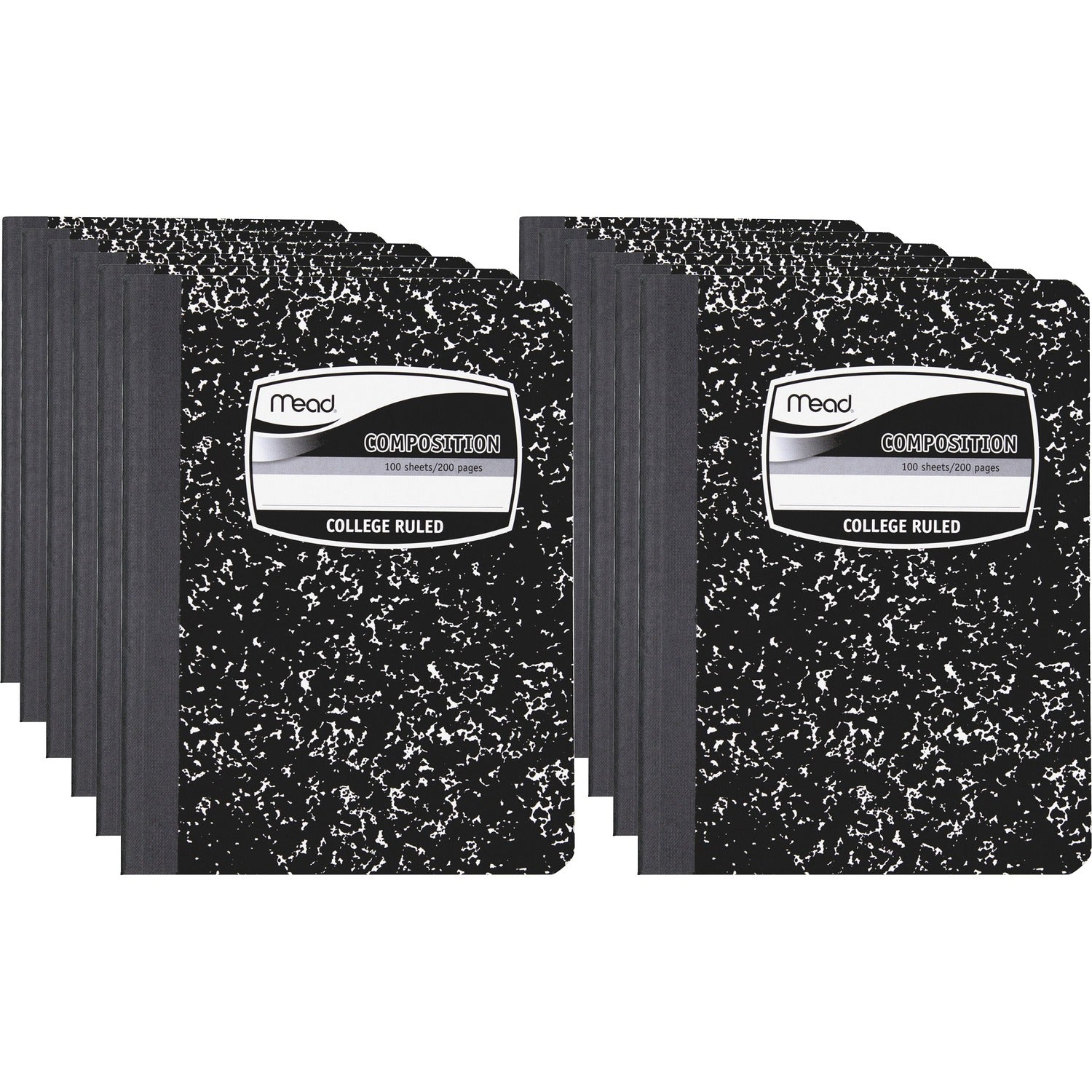 Mead 09910CT Composition Book, 100 Sheets, 7-1/2" x 9-3/4", Black 12/CT, Marble - Case of 12 MEA09910CT