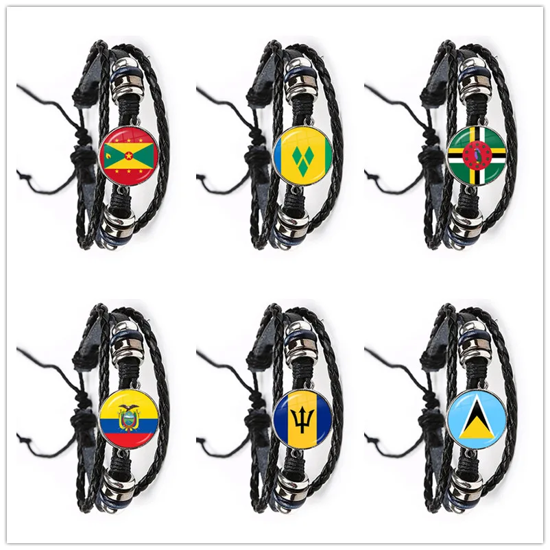 The Commonwealth of Dominica, Saint Lucia, Saint Vincent and the Grenadines, Barbados, Grenada, Ecuador National Flag Glass Bracelet