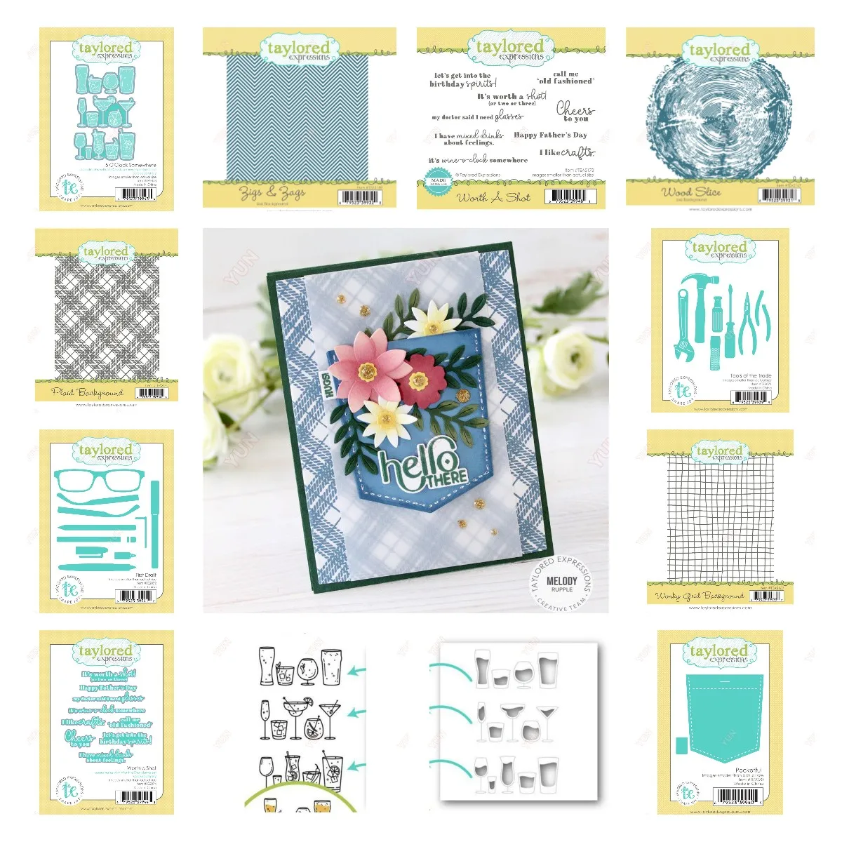 Plaid Background Tools of the Trade Beverage Metal Cutting Dies Stamps Stencil DIY Scrapbooking Paper Handmade Greeting Cards