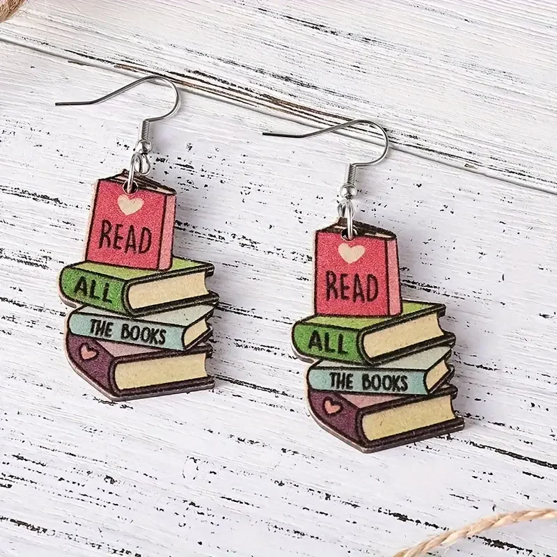 Book Love READ ALL THE BOOKS Earrings For Librarian Teacher Student Graduation Back To School Jewelry