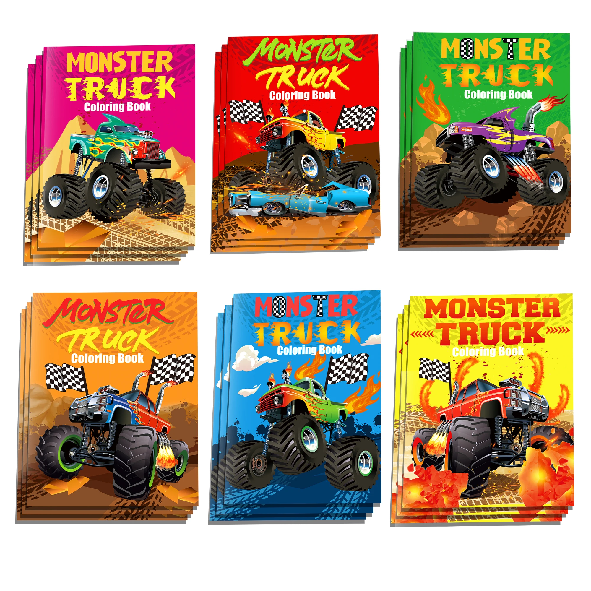 12pcs Kids Cartoon Monster Truck Game Graffiti Drawing Painting Books DIY Coloring Picture Book Baby Shower Birthday Party Gifts