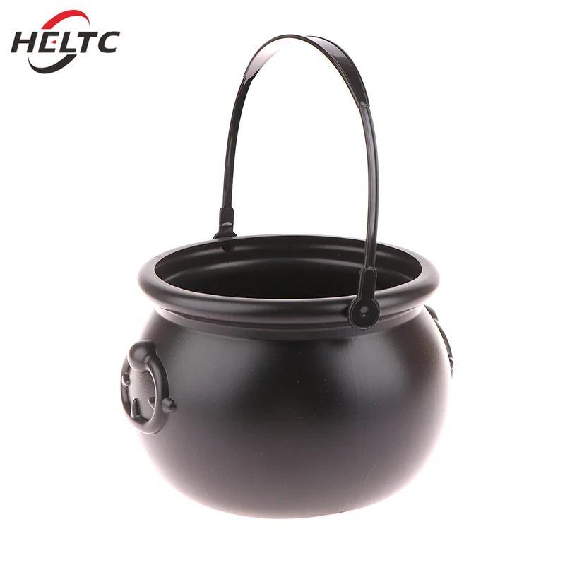 Halloween Witch Cauldron Decoration, Mini Black Plastic Witches Cauldron, Halloween Candy Basket, Trick Or Treat Bucket