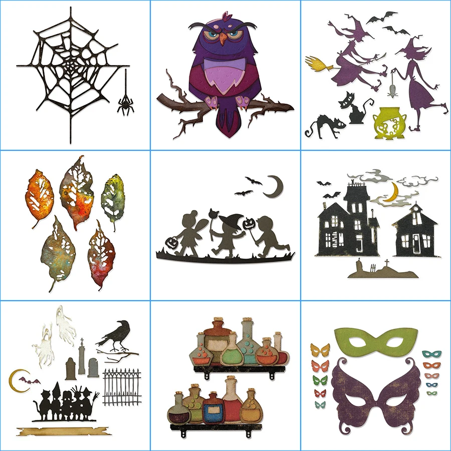 2025 Glass Leaf Owl Ghost Castle Witch Test Tube Metal Cutting Dies for Halloween Mask Spider Web Scrapbook Card Making Stencils  Read more