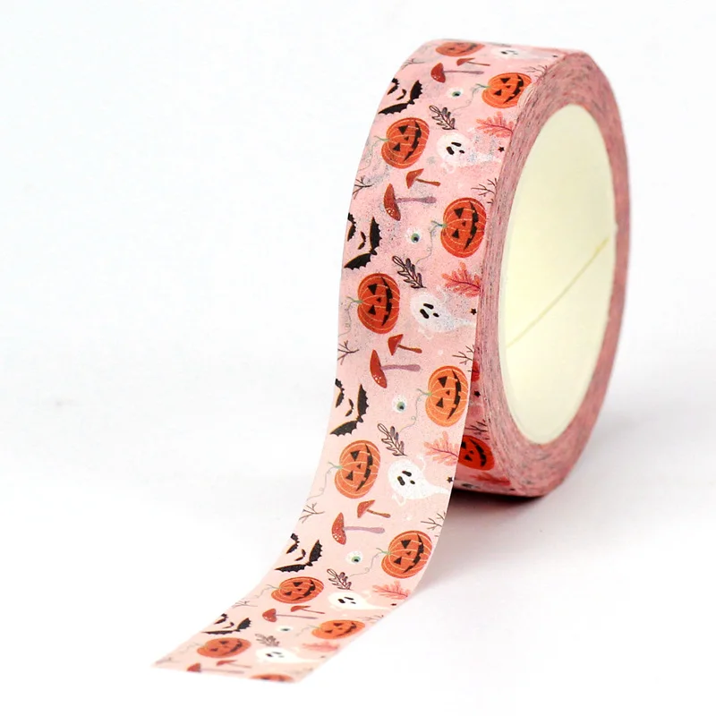 NEW 1PC. 10M Decorative Halloween Pumpkins Bats Mushrooms Leaves Washi Tape for Planner Masking Tape Kawaii Stationery