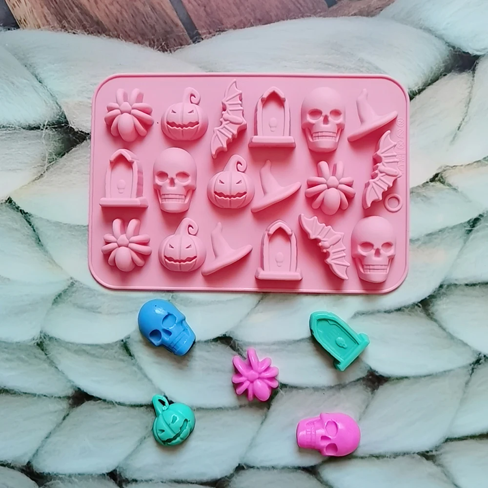 18 Cavities Halloween Silicone Molds Ghost Pumpkin Bat Skull Witch Hat For DIY Halloween Chocolate Candy Baking Mold