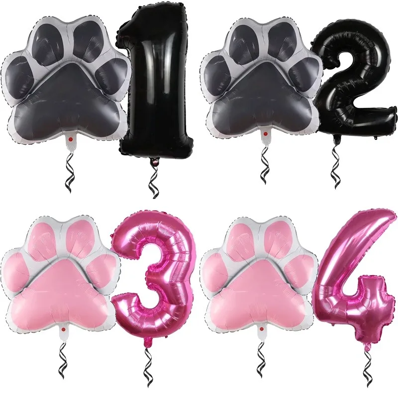 2pcs/set Let's pawty Big Dog Paw Aluminum Balloon 32 inch Pink Black 0 1 2 3 4 5 6 7 8 9 Year Birthday Party Decor Balloon Baby
