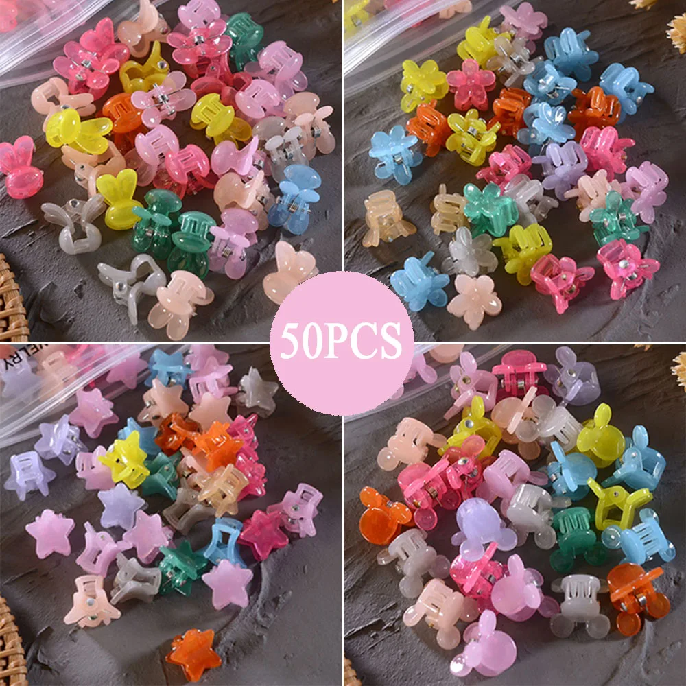 50PCS/Set Colorful Flower Small Crab Hair Claw Clips Girls Kids Acrylic Cute Mini Candy Star Hair Clamp Hairpin Hair Accessories