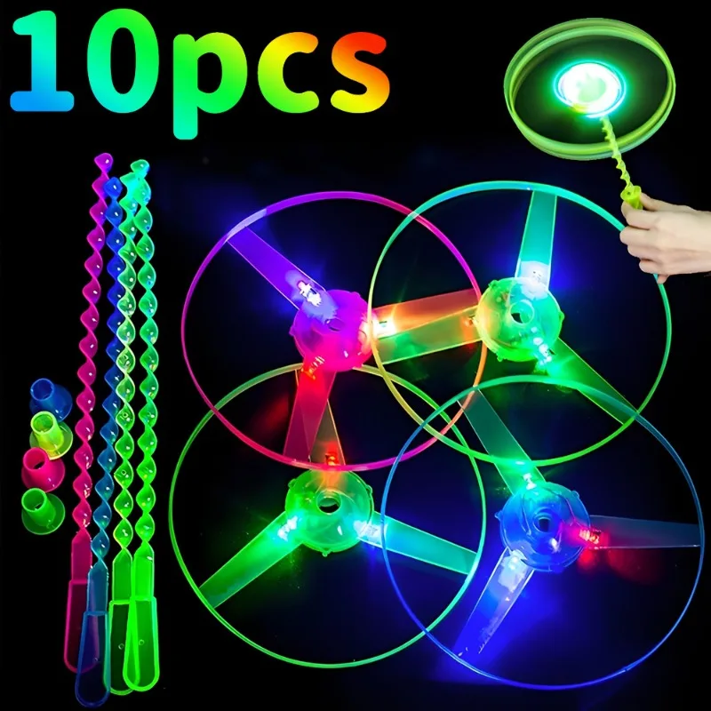 LED Luminous Bamboo Dragonfly Flying Saucers Outdoor Night Shooting Helicopters Flying Toys Kids Birthday Party Props Toy