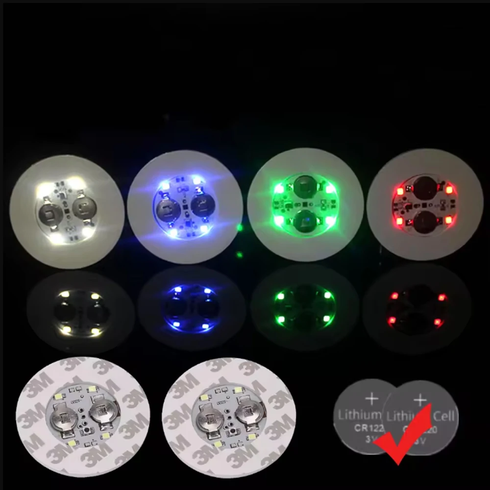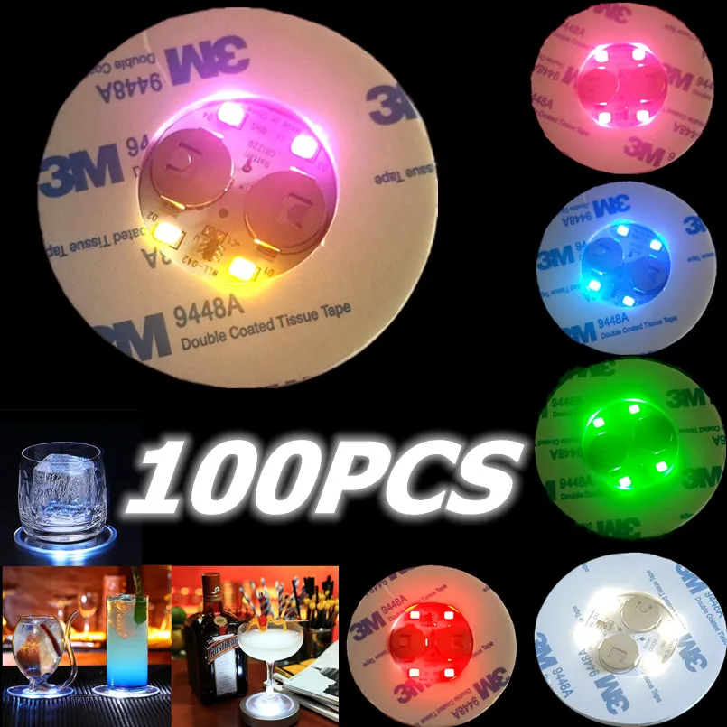 100Pcs LED Coaster Luminous Bottle Stickers Lights 6cm Lamps for Xmas Bar KTV Wedding Party Cocktail Drink Cups Vase Decor
