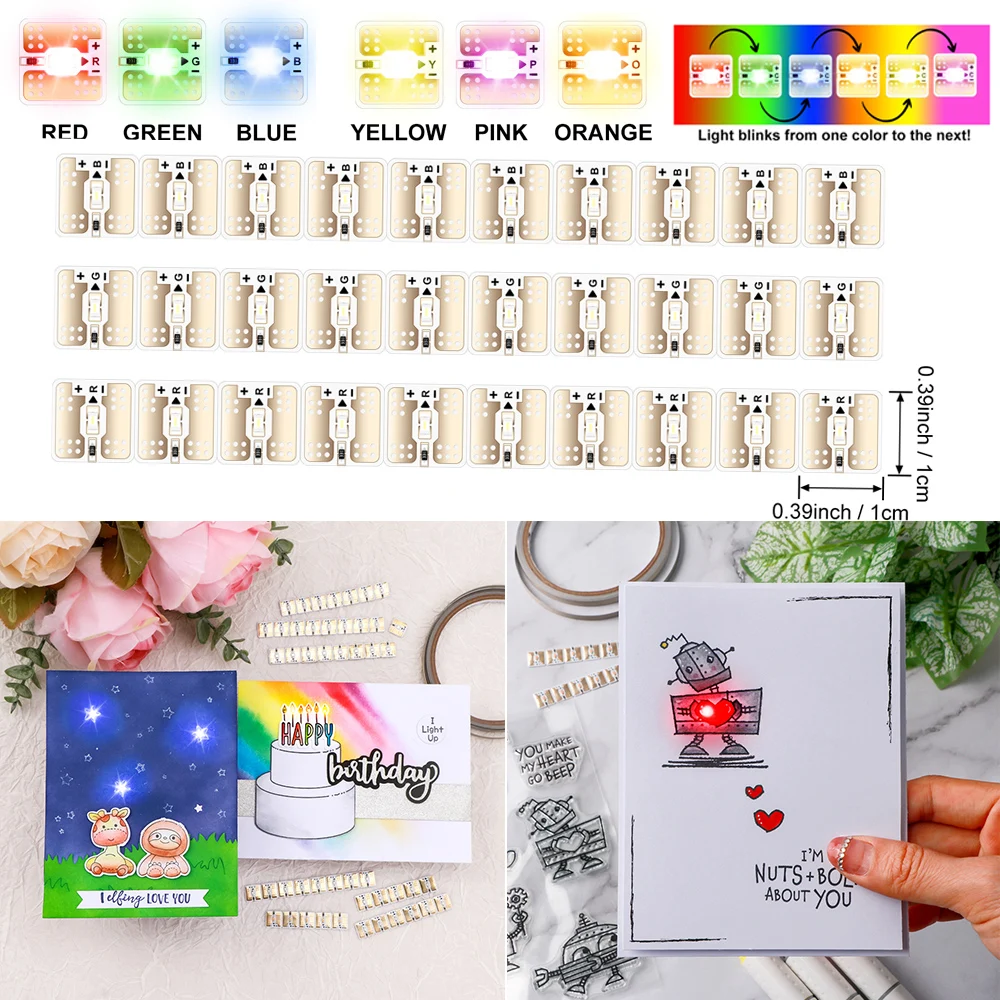LED Circuit Stickers Red Blue Green Yellow Orange Pink and Rainbow Blink Conductive Fabric Tape for DIY Light-up Paper Card