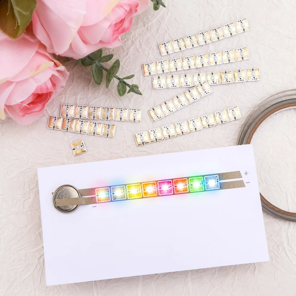 Bundle LED Circuit Stickers Rainbow Blink Light Craft Kit Set 10m Conductive Fabric Tape for Making Light-Up Elements Cards  Read more