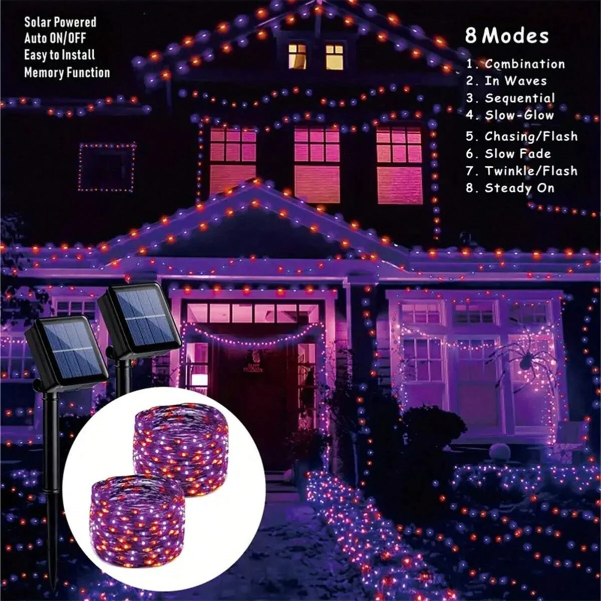 2 Pack 120LED Halloween Solar Powered Black Copper Wire Lamp Lights With 8 Lighting Modes Outdoor Waterproof Horror Atmosphere
