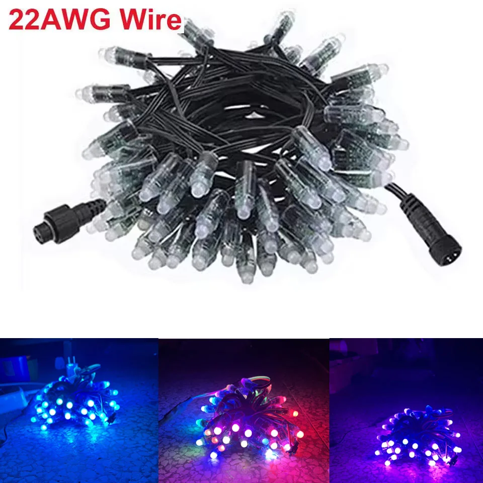 50pcs/set Holiday Wedding Christmas 12V WS2811 RGB Regulated Bullet Led Pixels Lamp Black Wire 22AWG with Ray Wu/xConnect IP68