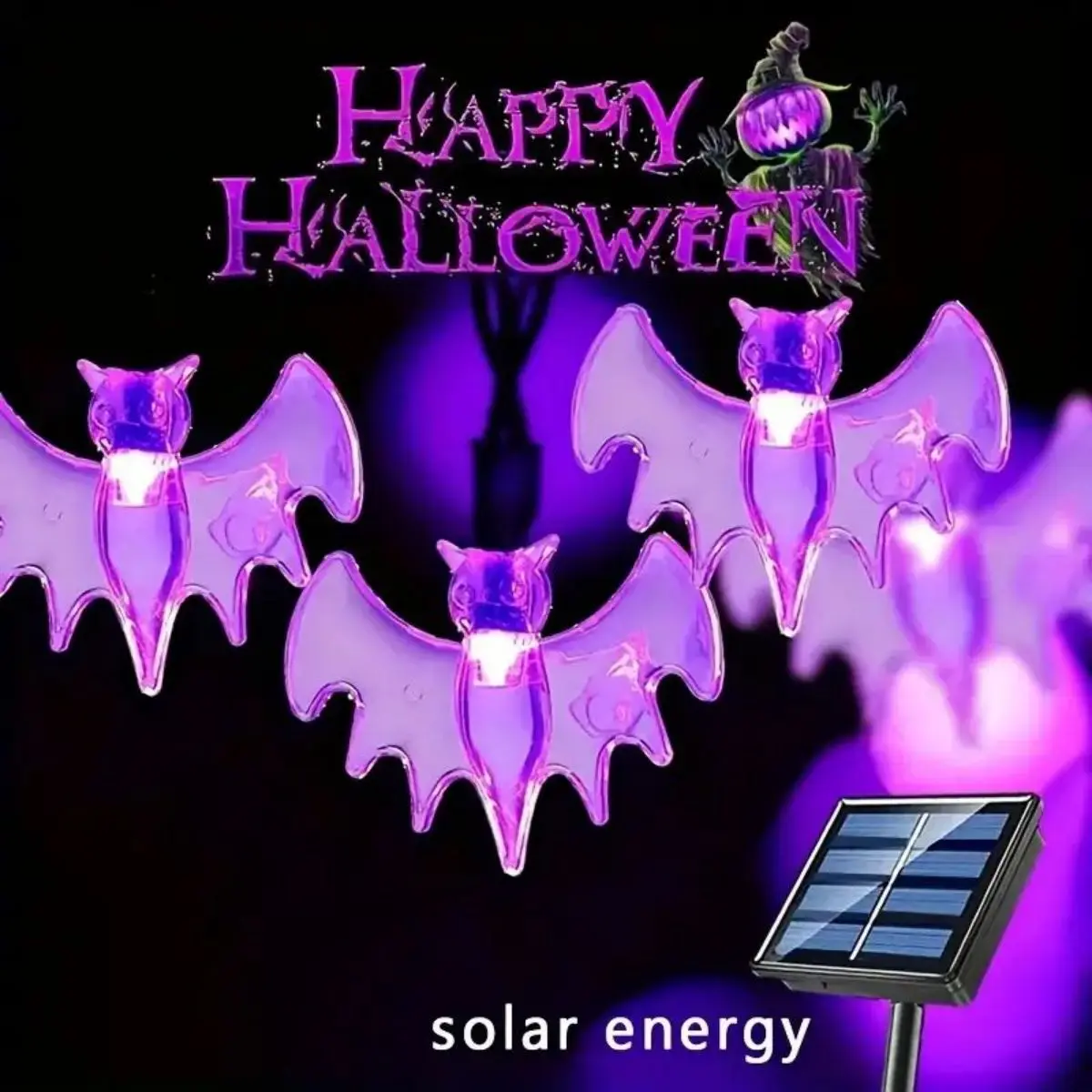 1 solar LED large purple bat string light, 8 modes, outdoor waterproof, suitable for Halloween decorative lights  Read more