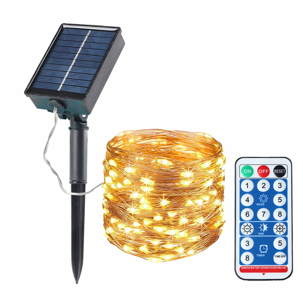 Outdoor LED Solar Fairy String Lights Waterproof Garden Decoration Garland 8Modes Copper Wire Light For Street Patio Christmas