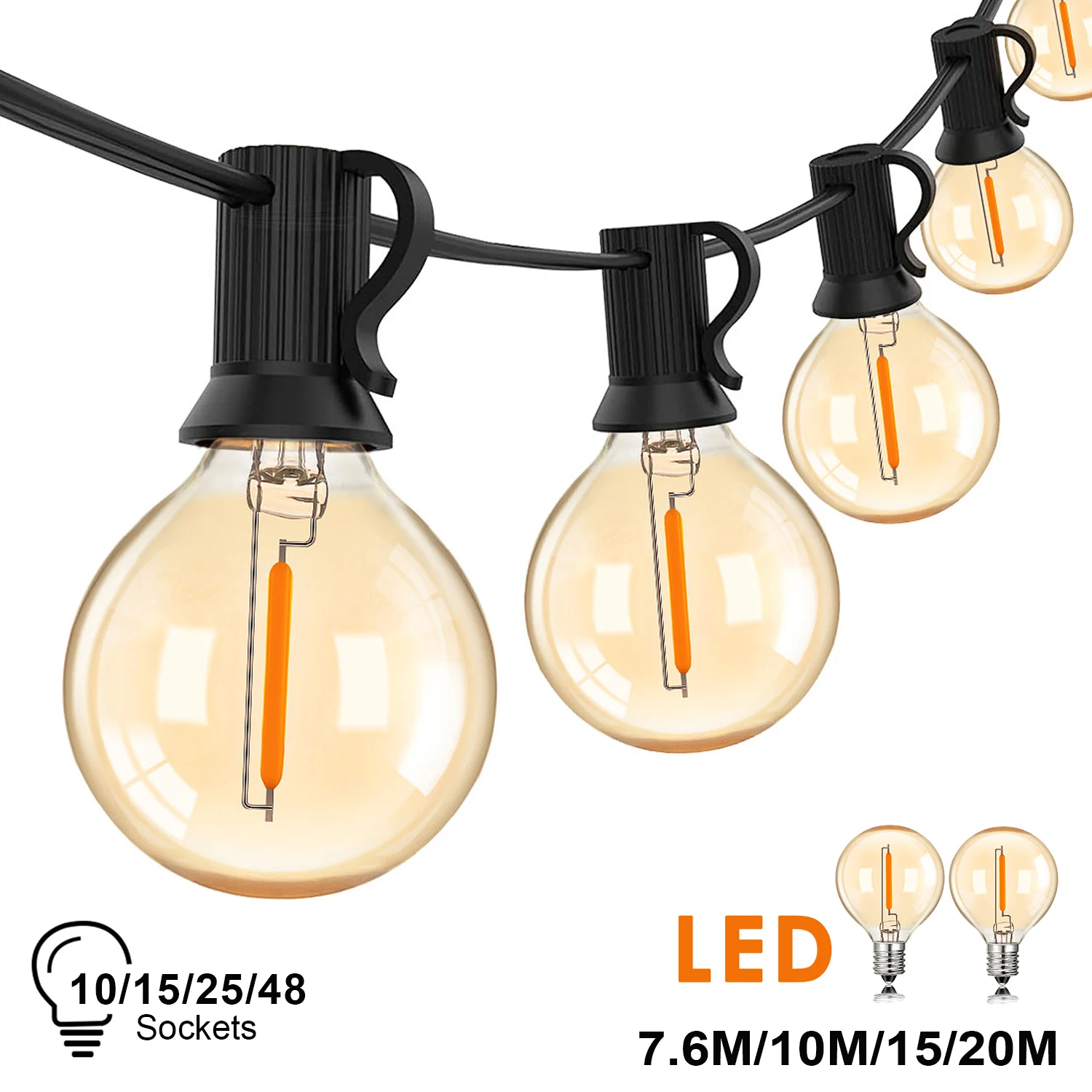 G40 Outdoor String Light Vintage Amber Glass Led Bulb Dimmable IP44 Waterproof Home Patio Decor Connectable Garland Fairy Light