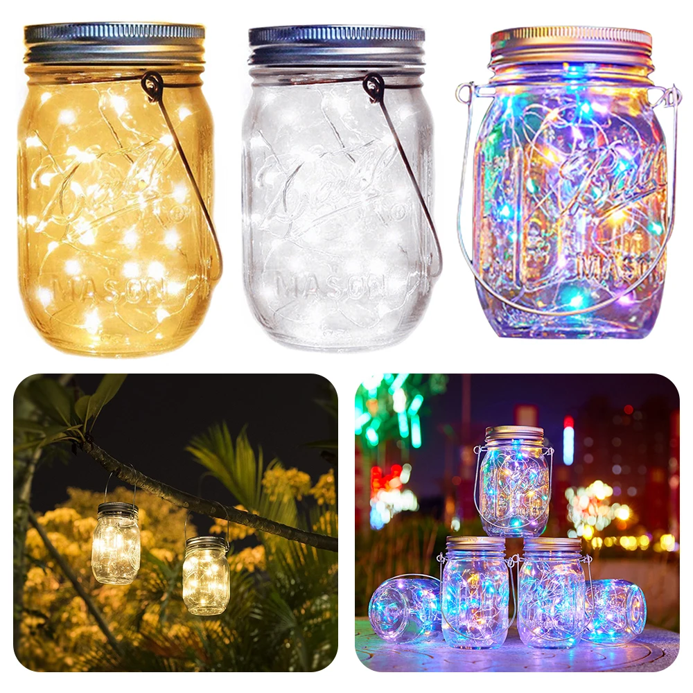 10/20LED Solar Fairy String Light Waterproof Fairy Mason Jar Lights Solar Charging Outdoor For Patio Garden Wedding Decoration
