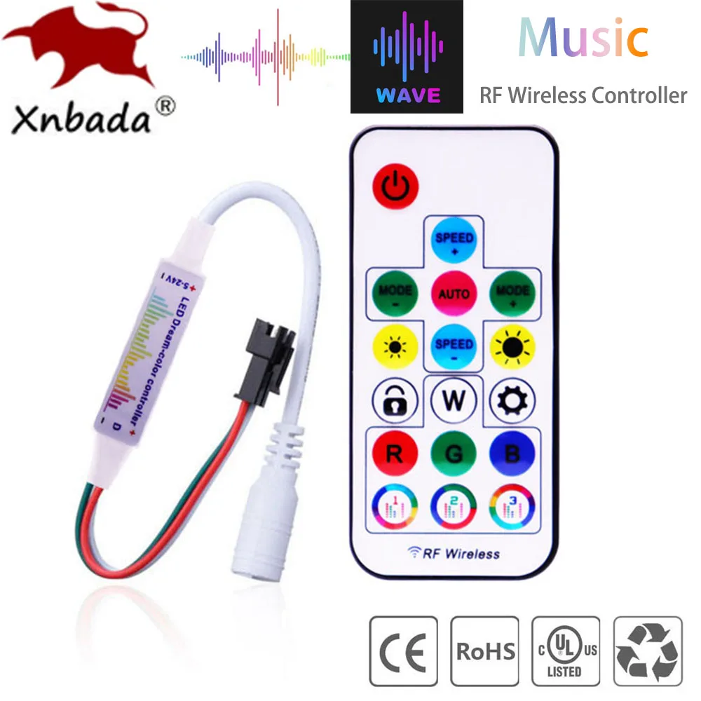 WS2812B WS2811 5050 RGB Led Strip Light Music Controller MINI 17Keys RF Remote Control 370Modes Change DC/USB DC5-24V