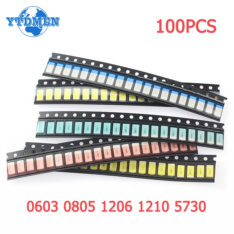 100pcs=5 colors*20pcs 0603 0805 1206 1210 5730 SMD LED Light Emitting Diode Kit Miniature LED Red White Yellow Green Blue