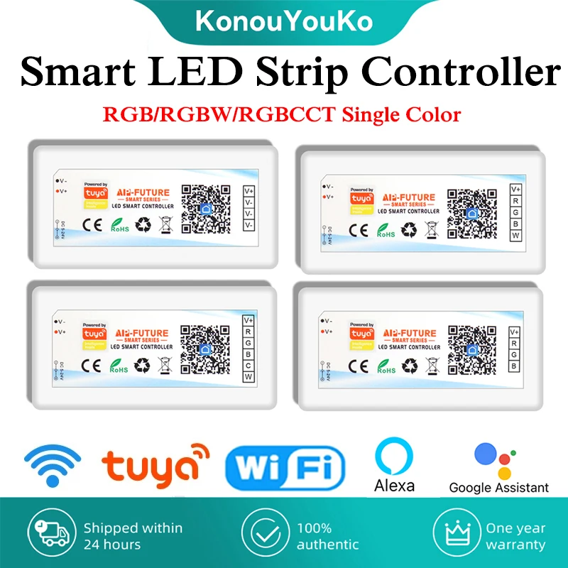 Tuya WiFi Smart LED Controller DC5-24V Single color Dimmer CCT RGB RGBW RGBCCT LED Strip APP Remote Works with Alexa Google Home  Read more