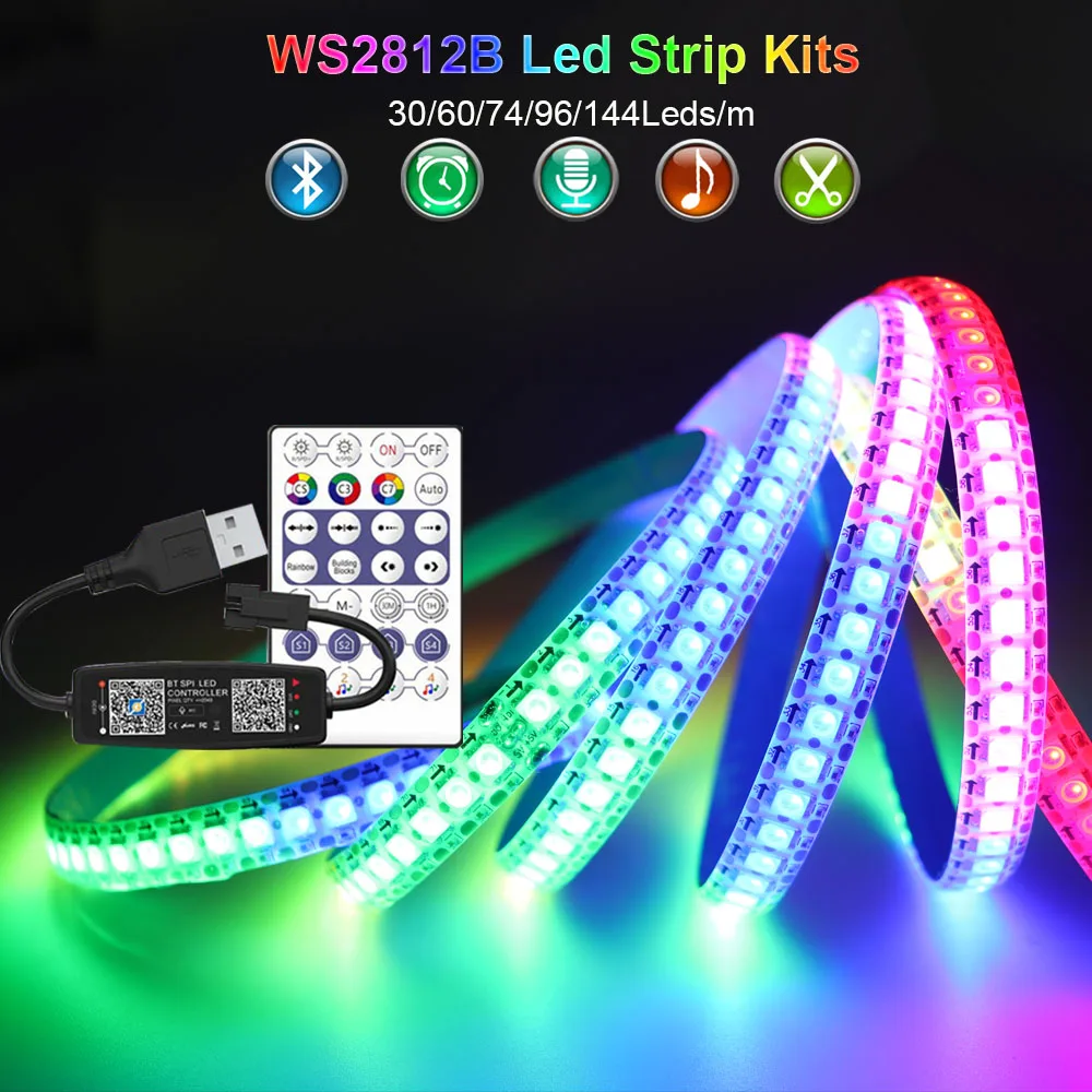 WS2812B LED Strip Bluetooth Music USB Controller Kit Individually Addressable Smart RGB LED Tape 30/60/74/96/144Leds/m DC5V