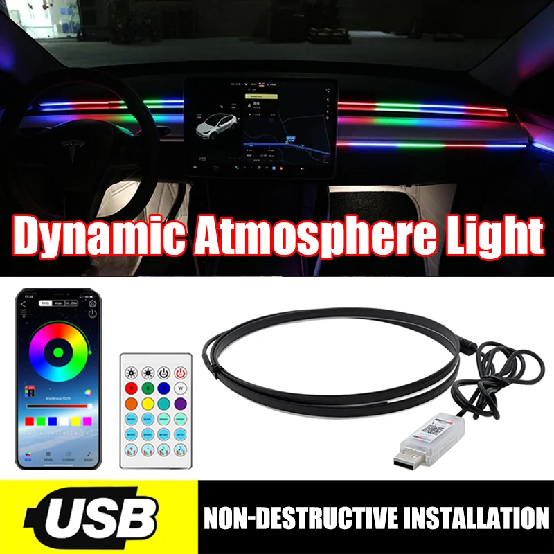 USB Car LED Ambient Light Acrylic Strips Full Colors RGB Car Interior Hidden App Remote Control Atmosphere Lamp