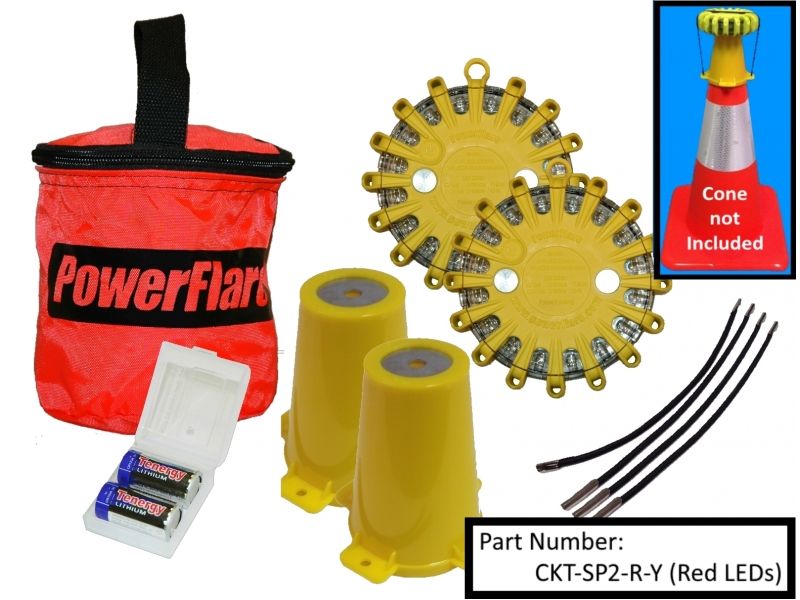 Powerflare 2-Position Cone Adapter Kit with 2-Pack Soft Pack of PowerFlare Lights Amber LEDs Yellow Shell CKT-SP2-A-Y